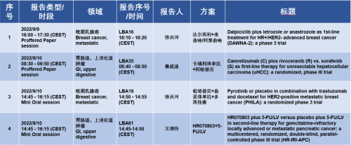 9月9日至12日(CEST),ESMO大会伊始,将有中国医学科学院肿瘤医院徐兵河院士、南京金陵医院肿瘤中心秦叔逵教授和上海交通大学医学院附属仁济医院王理伟教授报告乳腺癌、肝癌和胰腺癌的四项重磅Ⅲ期研究,分别为“达尔西利联合来曲唑或阿那曲唑治疗HR+/HER2-晚期乳腺癌的DAWNA-2研究(LBA16)”、“吡咯替尼联合曲妥珠单抗和多西他赛治疗HER2+转移性乳腺癌的PHILA研究(LBA19)“、“卡瑞利珠单抗联合阿帕替尼一线治疗不可切除肝癌的研究(LBA35)“以及“HR070803联合5-氟尿嘧啶(5-FU)和亚叶酸钙(LV)二线治疗吉西他滨难治的局晚期或转移性胰腺癌的HR-IRI-APC研究(LBA61)“,以上四项重要研究将在ESMO大会的Proffered Paper和Mini Oral环节报告,让j9国际站一起期待这些重磅研究,第一时间领略乳腺癌、肝癌、胰腺癌领域的研究硕果。
