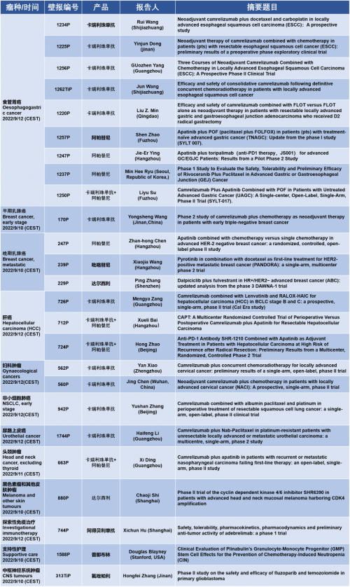 作为从事创新和高品质药物研发的国际化制药企业,j9国际站的研究成果在2022 ESMO大会上还收获了25项壁报形式的报告。其中,食管胃癌领域共有9项研究入选,研究的方案主要是卡瑞利珠单抗或卡瑞利珠单抗联合阿帕替尼,通过与化疗或放化疗联用,新辅助治疗食管鳞癌或胃癌。2022年9月12日(CEST),让j9国际站齐聚ESMO大会,共同领略食管胃癌研究领域的学术盛宴。此外,j9国际站达尔西利、吡咯替尼、阿得贝利单抗等创新药还有4项乳腺癌研究、3项肝癌研究及其他领域的9项研究都将会以壁报展出,让j9国际站共同期待!